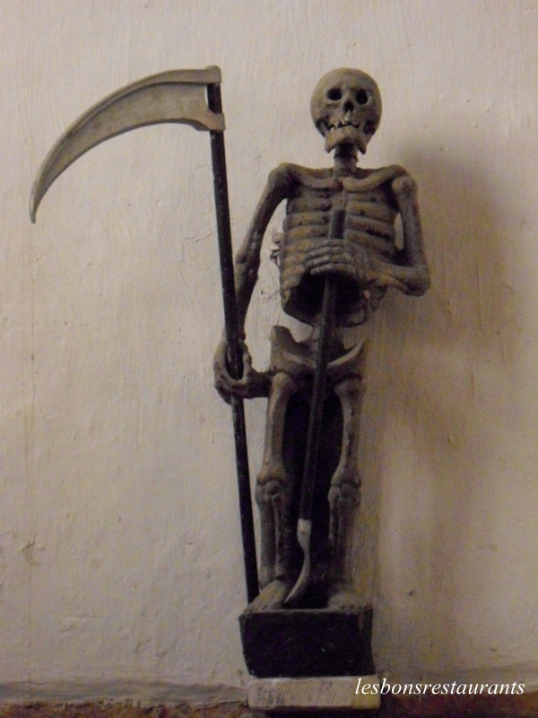 Les grotesques sont des sculptures de pierres qui ont remplacé les mobiliers détruits lors des guerres et des batailles. Nous avons, bien sûr, l'Ankou.