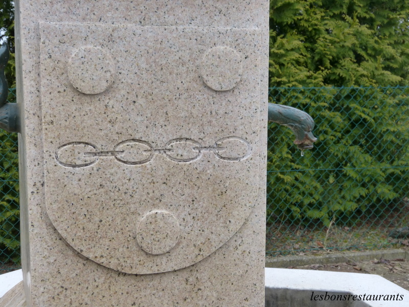 Sur cette fontaine sont sculptés trois besants.