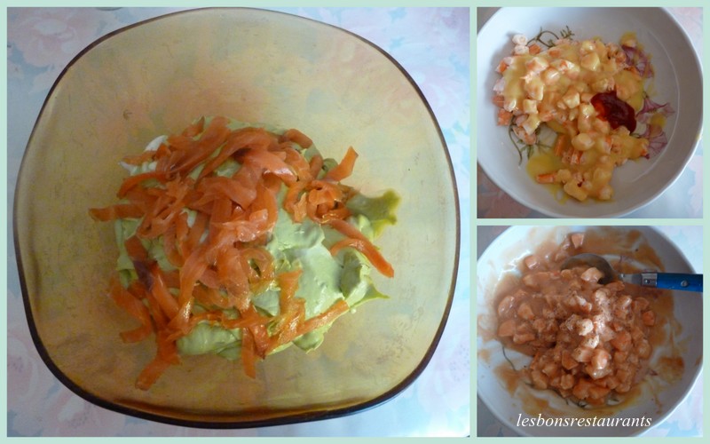 Aujourd'hui, je cuisine des cocktails d'avocat aux crevettes et au saumon fumé.