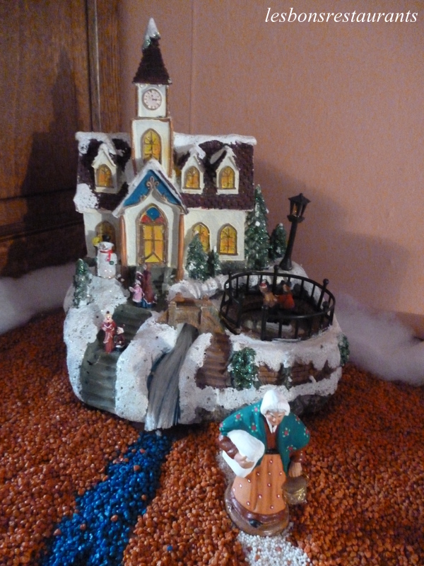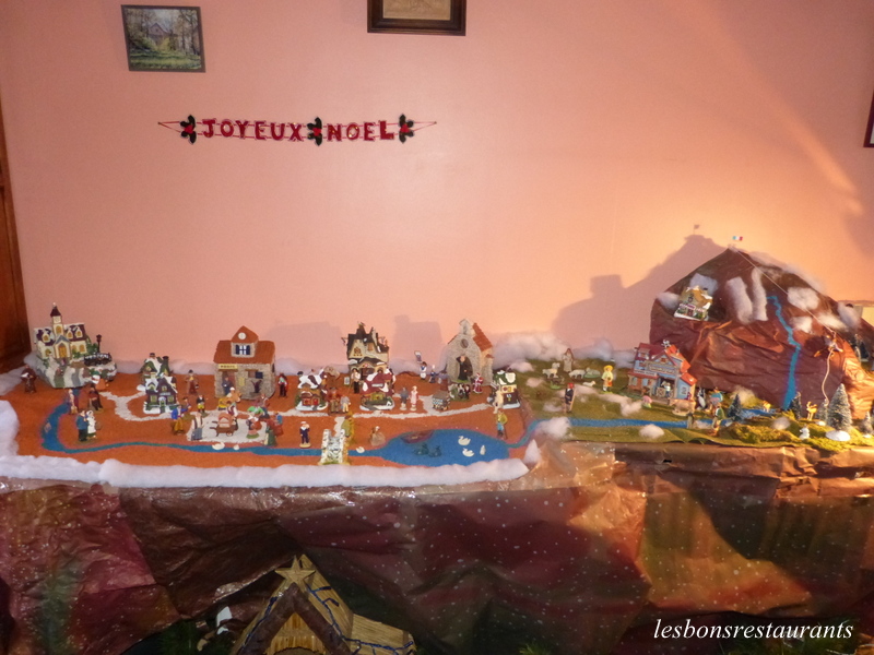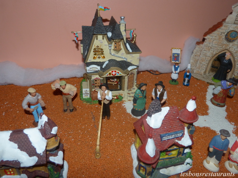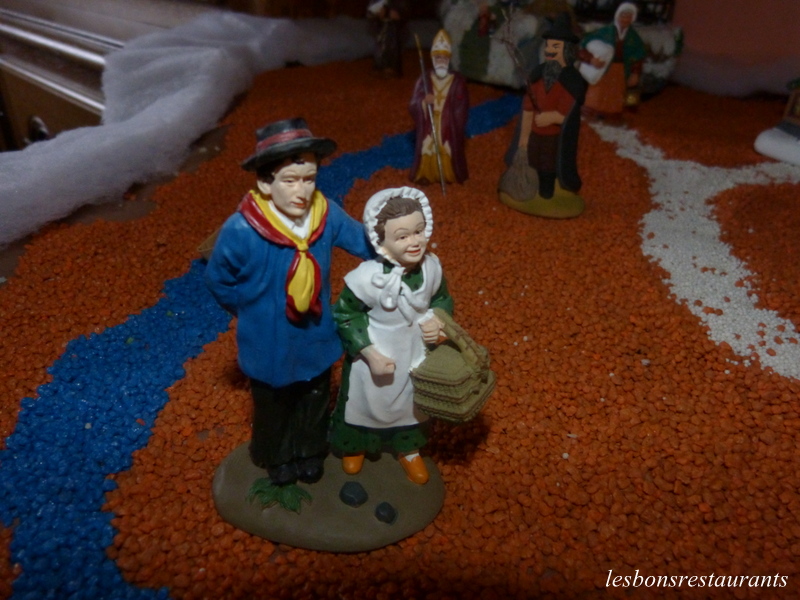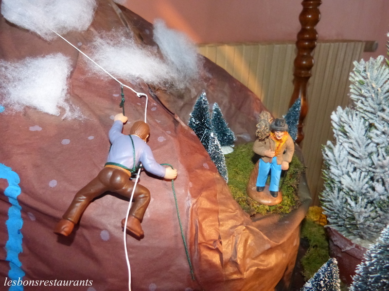 Sur cette montagne figure un alpiniste, santon savoyard que nous trouvons sur le marché de Noël de Kaysersberg. Cet achat a été suivi par bien d'autres...Et, depuis quelques années, nous en avons assez pour recréer une atmosphère très villageoise!
