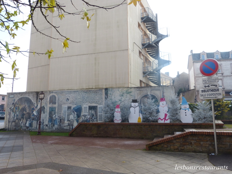Rappelez-vous de ces deux très beaux ronds-points: -le traîneau du Père Noël (voir le lien) -le train du Père Noël (voir le lien) Cliquez sur les photos pour les agrandir! Square du Souvenir Français, les bonhommes de neige étaient, eux aussi, présents....