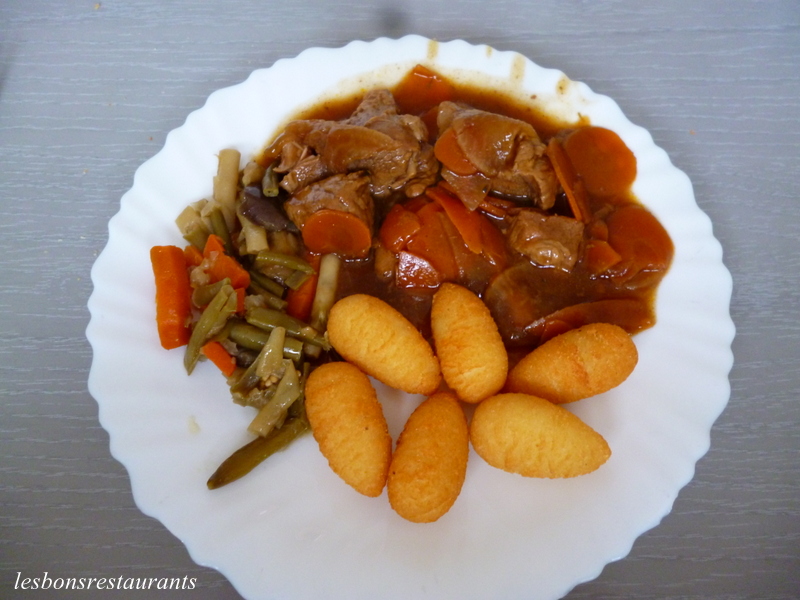 Le sauté de veau Marengo était servi avec une garniture de légumes et ses croquettes de pommes de terre.