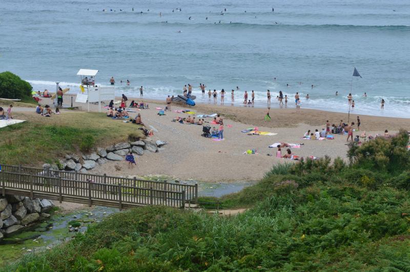 hier nous avons profité de la baisse (relative) des températures pour aller faire une ballade au Pays Basque (et ravitailler le bar un peu vide) - hélas le temps couvert ne nous a pas permis d aller en hauteur, nous sommes donc restés sur la plage en peu "clairsemée" à cause du manque de soleil et de forte chaleur mais pour nous c était l idéal (on n est pas de grands amateurs de baignade)