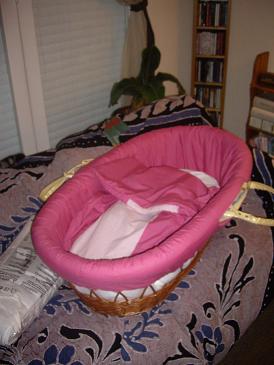 j avais donc amené ma machine à coudre afin de tout faire sur place - là il s agissait d habiller le coufin que j avais acheté pour la naissance de Romain, il y a 9 ans, et qui était parti chez une copine - ma fille l avait enfin récupére mais bien sûr la couleur ne lui plaisait pas donc il fallait refaire une coque -