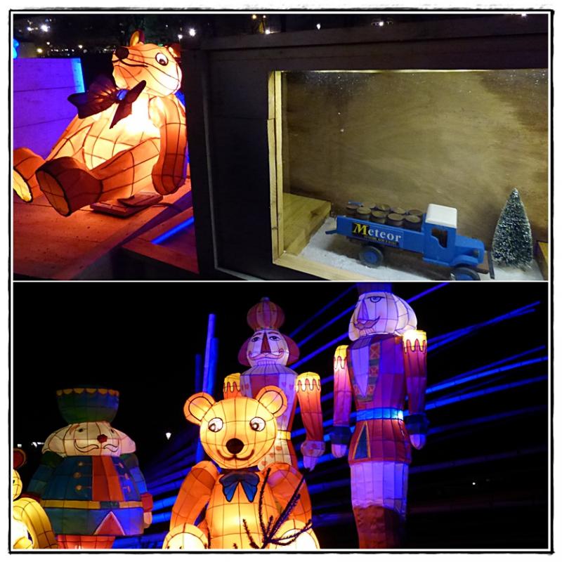 Lutins, ours en peluche, soldats de bois s'illuminent pour donner vie à un parcours poétique.