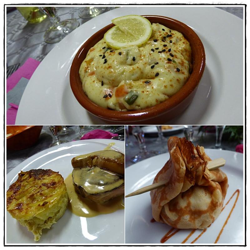 Au menu : - Cassolette saint-Jacques et crevettes - Tournedos canard "Rossini" - Assiette fromagère - Aumonière pommes caramel beurre salé.