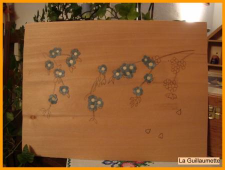 Lundi 23 Février 2009 J'ai terminé toutes les petites fleurs bleues. Et maintenant, je reprends le cutter pour découper les branches et petits feuilles. =========================================