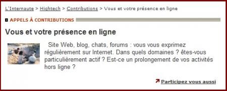 J'ai répondu à l'appel à contributions lancé par l'Internaute High-Tech à propos du sujet "Vous et votre présence en ligne".