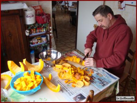 Ce matin, Roger s'est occupé de notre avant-dernier potiron du jardin!
