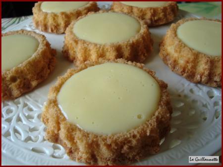 6 - Pendant la cuisson des fonds de tarte, préparer la crème pâtissière ou le pudding. Le laisser un peu refroidir puis le verser dans le creux des fonds de tarte.