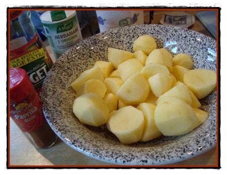 1 - Laver les pommes de terre et les couper en quatre. Vous n'êtes pas obligés de les éplucher mais moi, je l'ai fait!