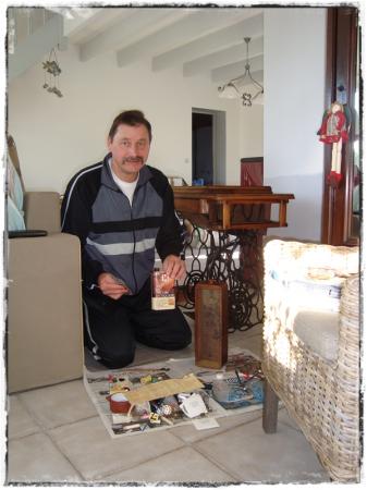 Roger continue ses petits travaux. Cette fois-ci, il s'occupe de notre vieille machine à coudre. Un petit coup de cire la remet en valeur.