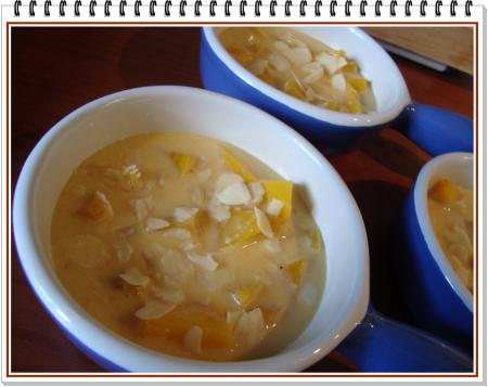 Gratin de pêches et autres fruits aux amandes |