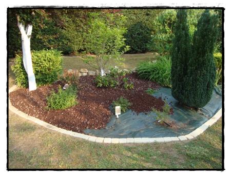 ... et vidé la pouzzolane sur la bâche qu'il avait posée dans le massif au fond du jardin.