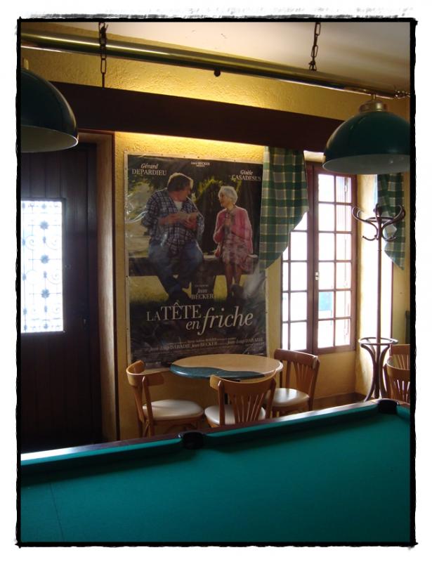 En effet à l'automne 2009 a été tourné à Pons, le film "La tête en friches" de Jean Becker avec Gérard Depardieu, Gisèle Casadesus, Maurane, Jean-François Stévenin et Patrick Bouchitey (voir article). Le bar "Le Français" situé dans la ville haute près du donjon était le décor majeur du film. Il a été rebaptisé "Chez Francine" pour les besoins du film. C'est à cette terrasse que nous avons pris notre café. L'intérieur du bar est décoré par de nombreuses photos prises au cours du tournage.