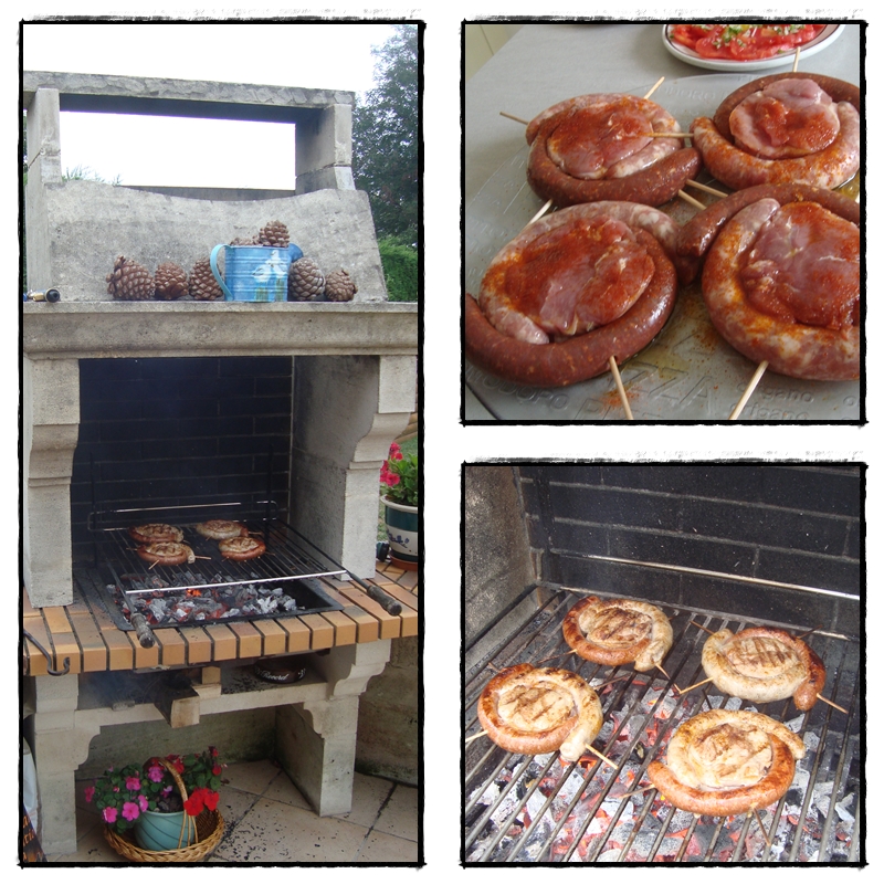 Roger s'est chargé de la cuisson au barbecue et nous voilà à table prêts à nous régaler....