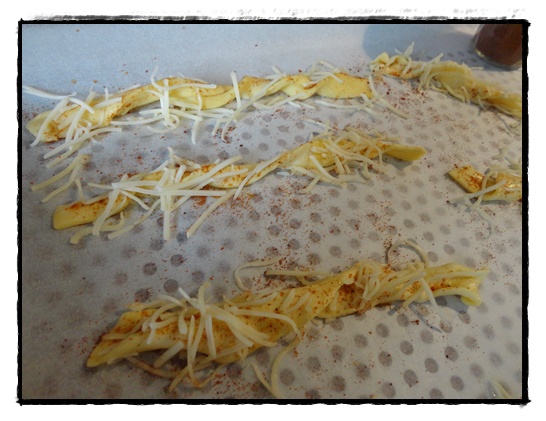 2 - Tremper un pinceau dans de l'eau et badigeonner les torsades de pâte. Les saupoudrer de paprika puis de gruyère râpé.