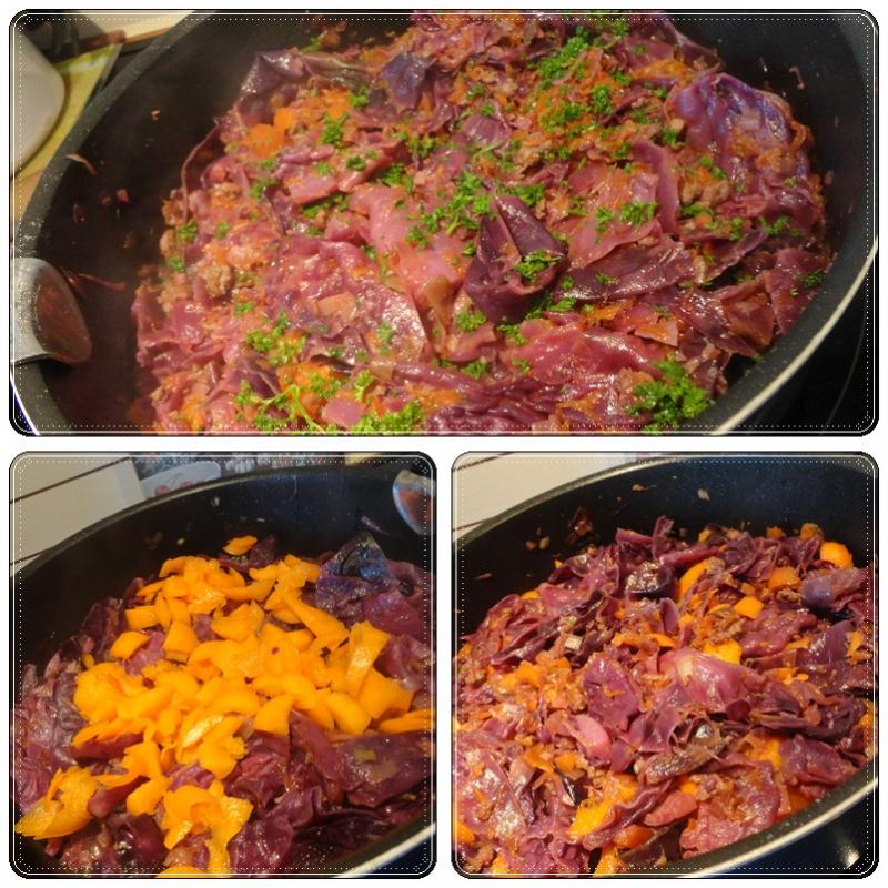 Pour la première fois, je l'ai farcie avec du chou rouge de la motte que j'avais congelé! C'est une expérience à renouveler....