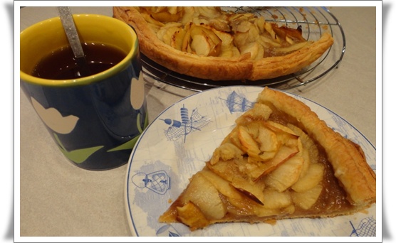 J'ai mis la tarte dehors pour qu'elle refroidisse plus vite car c'était l'heure du goûter.....