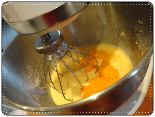2 - Quand la chair est bien cuite, la mixer et la verser dans une passoire pour bien l'égoutter. Petit conseil : j'ai effectué ces 2 opérations la veille pour être sûre que le potiron ne contienne plus d'eau. Mais finalement, il y avait très peu d'eau dans la soucoupe!