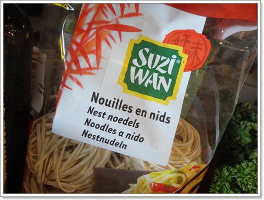 3 - Dans un grande casserole, faire bouillir de l'eau avec le cube et saler légèrement. Ajouter les nouilles. Retirer la casserole de la plaque de cuisson et couvrir. Au bout de 5 minutes, les égoutter et les séparer à la fourchette. Réserver.