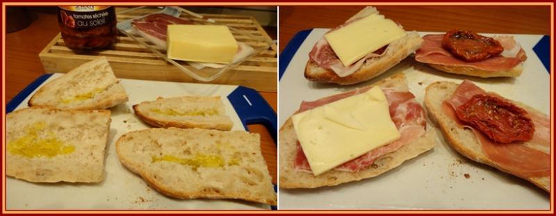 1 - Badigeonner d'huile d'olive les tranches de pain.