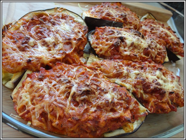 5 - Garnir les aubergines avec le mélange. Saupoudrer de gruyère râpé.