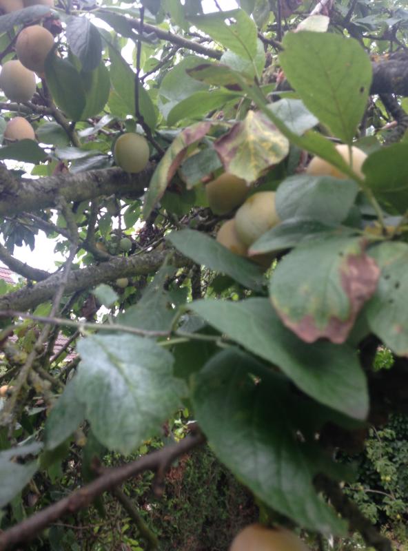 Les prunes non traitées - moitié par- terre moitié sur l'arbre