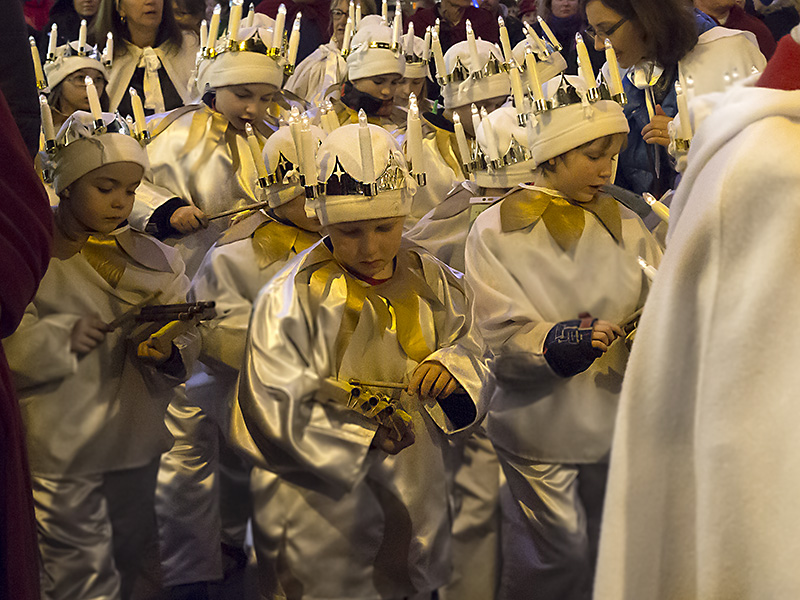 Cette parade de 140 enfants issus des écoles de musique, coiffés de couronnes de bougies et vêtus de blanc déambule dans la Cité au son des fifres et des grelots.
