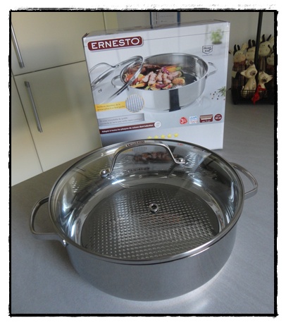 Après l'achat de mes nouvelles assiettes alsaciennes, j'ai craqué pour un nouveau faitout en promo cette semaine chez LIDL. Je l'ai payé 19€99... pour ne pas dire 20€!!!!
