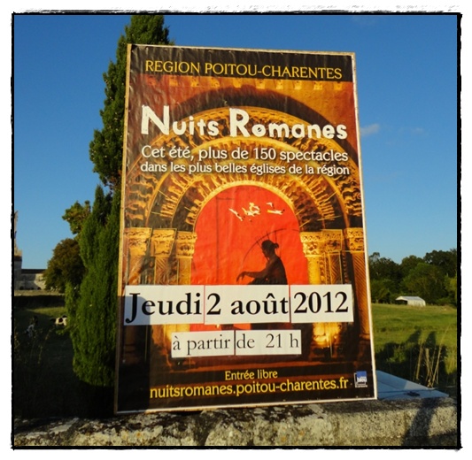 La Région Poitou-Charentes nous offre durant tout l'été, plus de 150 soirées gratuites qui permettent de découvrir la richesse du patrimoine roman du Poitou-Charentes. Pour chacune d'entre elles, un spectacle, conçu pour s'adapter à l'environnement architectural, est proposé par des artistes professionnels. On y découvre divers univers artistiques : arts de la rue, arts plastiques, pyrotechnie, musique, .... C'est un temps convivial qui se termine toujours par la dégustation de produits régionaux. Jeudi soir, nous nous sommes rendus sur le site de l'abbaye de Sablonceaux pour assister à une étape des fameuses Nuits Romanes en Poitou-Charentes.