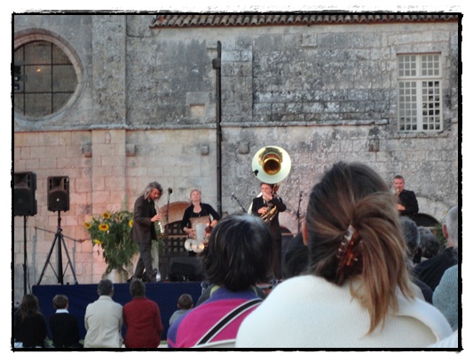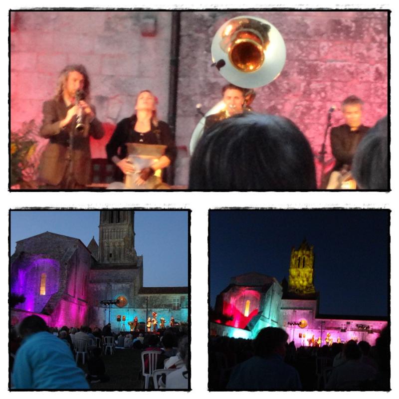 Leur répertoire a remis en mémoire les grands noms des années 1920-1940 : FATS WALLER, LOUIS ARMSTRONG, KING OLIVER, COLE PORTER, ..... Pendant le concert et au fur et à mesure de la tombée de la nuit, nous assistons à l'illumination de l'abbaye.