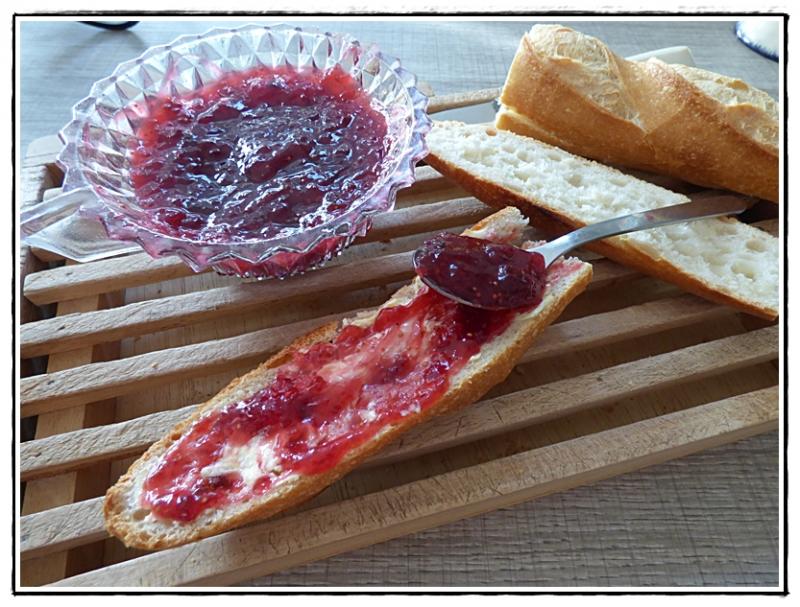 J'ai suivi cette recette réalisée au Thermomix que j'avais déjà partagée avec vous. J'ai fait 6 pots et... .... le restant a été tout de suite goûté le lendemain matin au petit-déjeuner. Un délice! une belle consistance et la confiture n'est pas trop sucrée.