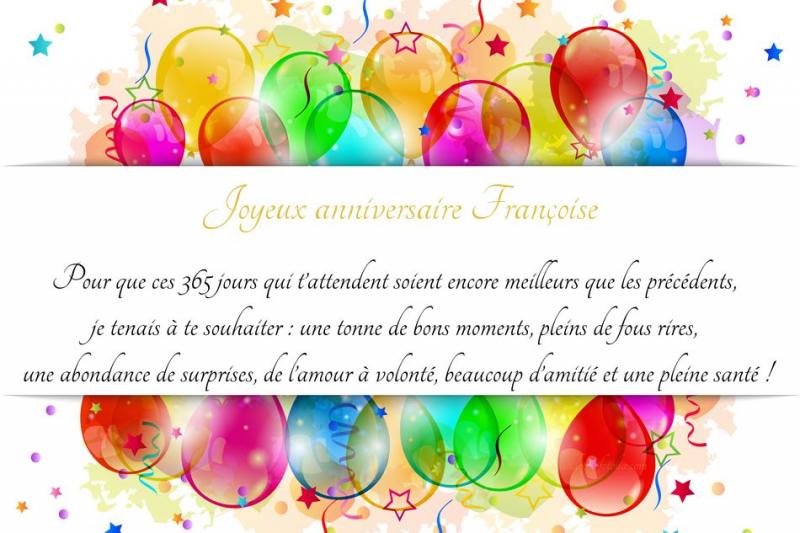 Mais c'est avec tout mon coeur que Je te Souhaite un Joyeux anniversaire ma petite Françoise ! Que cette année t'apporte tout ce que tu peut désiré je t'embrasse bien lisette