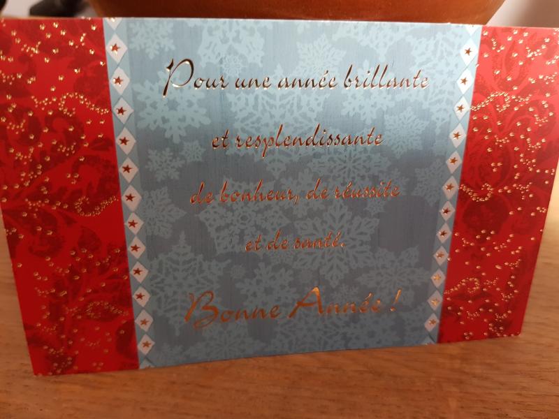 Merci Françoise et Roger pour cette belle carte de Voeux elle Prône sur mon meuble de living !