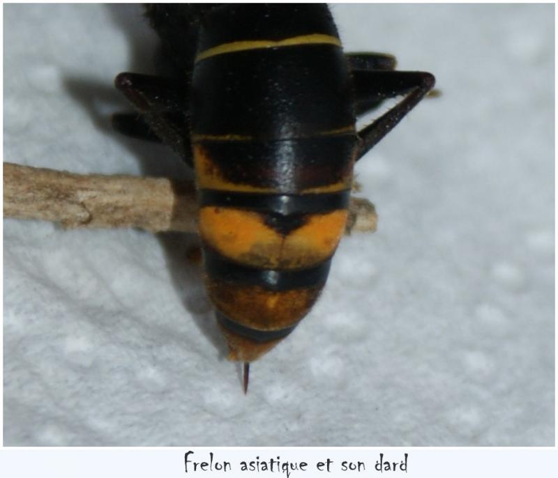 Les frelons asiatiques mangent les abeilles et mettent en danger nos ruches ... Nous en sommes envahis depuis 2004 en Loir et cher . A ce jour, il y en a encore qui viennent ce nourrir sur mes lierres près de ma cuisine !! je dois être très vigilente. Il n' y a pas d' essaim chez moi ; mais il est peut - être dans le village. |