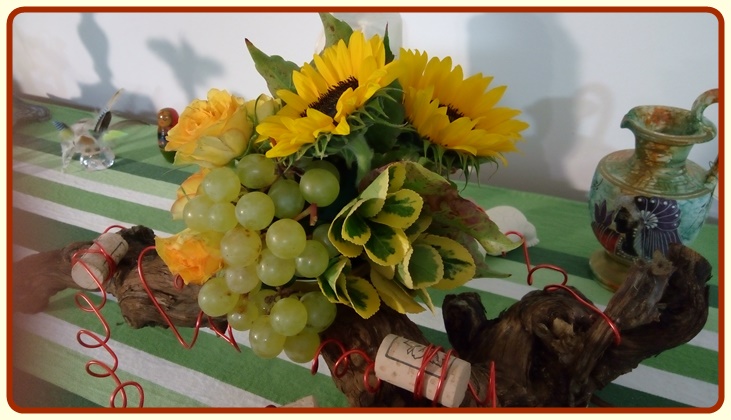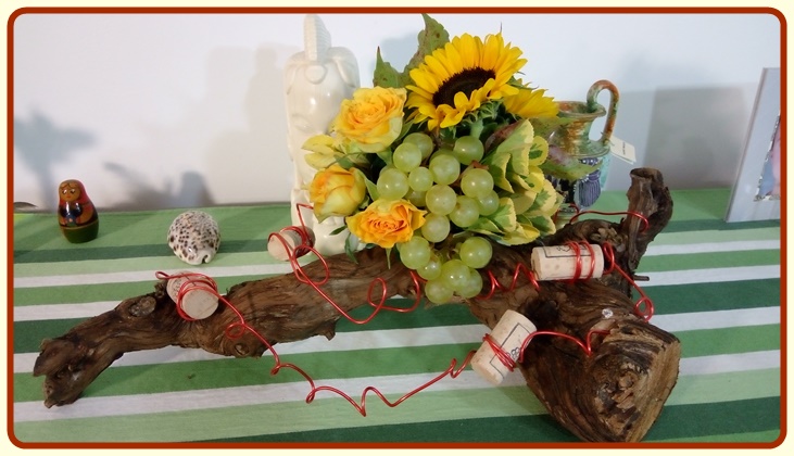 Une reprise aux couleurs de l'automne, un régal de travailler le cep de vigne, de l'accompagner de tournesols, de bouchons, ........