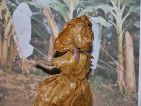 En regardant sur un site d'annonce que je n'avais pas visité depuis quelques jours, je suis tombée en admiration devant cette poupée habillée de feuilles de bananier. J'ai écrit, la poupée n'est pas vendue, je vais donc la chercher avec mon homme demain Voici les photos de l'annonce mais je mettrais de plus belle quand elle sera à "moi" pour la modique somme de 8euros !!