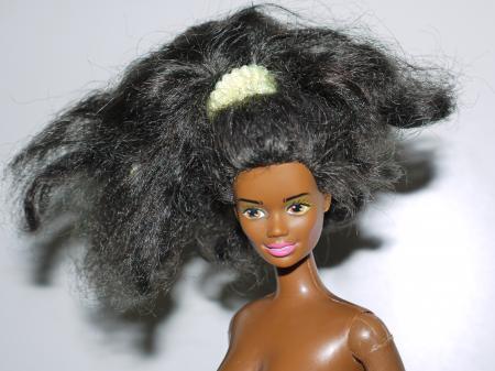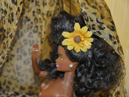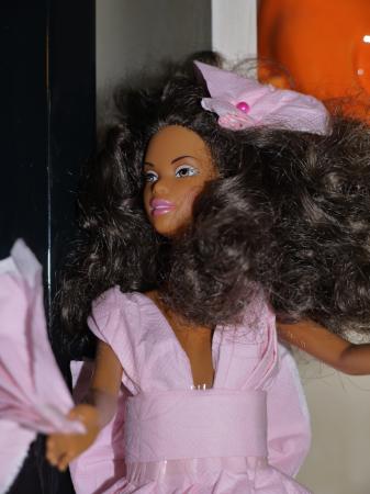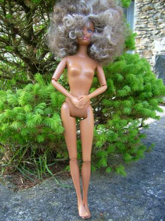 j'ai hésité longuement entre la belle poupee noire et la brune si j'avais eu le budget j'aurais bien pris les deux quand meme, alors la brune étant articulée partout mais pas la poupee noire, j'ai donc "adopté" la brune