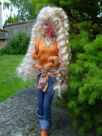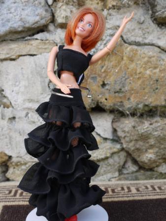 Trainant dans une grande surface avec mon compagnon, voila que j'apercois des poupées de type barbie pour la modique somme de 2E49, la poupée en elle meme n'est pas terrible mais la tenue, les accessoires et les chaussures sont tres chouettes, j'ai donc acheté une poupée pour essayer sur la barbie que m'avait offert Ray lorsque nous nous sommes connus Voila le résultat