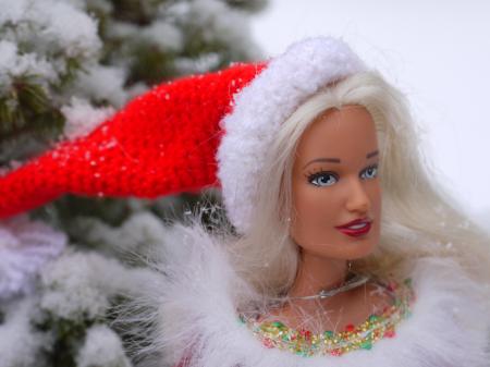 Comme la neige est la et bien présente, pas moyen d'y échapper ! j'ai donc annulé mon idée d'aller faire des courses et j'ai sorti mes poupees "Mère Noel", je me disais qu'un décor naturel ne pouvait que rendre mieux mais avec la neige qui tombe .. pas évident