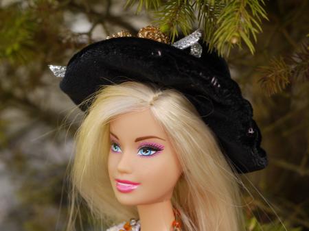 La dent me laissant souffler, j'ai pu finir cette tenue faite de récup et donc habiller et prendre photo cette barbie terminée, j'ai réussi à la coiffer, a faire tenir le chapeau, j'ai juste pas encore trouvé la solution pour les chaussures !