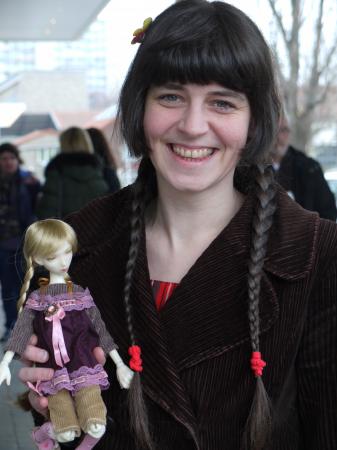 Ce matin, nous étions fin prets à 8h30, j'avais prévu "grand" pour le trajet, l'ouverture des portes à Bagnolet étant prévue pour 10h. Pas de bol, plus de place au parking ... nous avons cherché et oh joie immense une place dans une ancienne descente d'un parking d'un centre commercial. Dès l'entrée, j'ai repéré une jeune fille avec sa poupée BJD dans les mains, apres avoir repéré avec mon homme l'entrée du salon, je suis revenue prendre cette charmante jeune fille qui a accepté que je la prenne avec son adorable poupée.