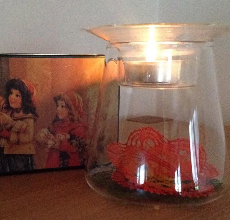 Toute l'année je garde ce photophore près de moi...il m'a été offert par mon amie Christine, dentelière hors pair, il y a déjà bien des année.
