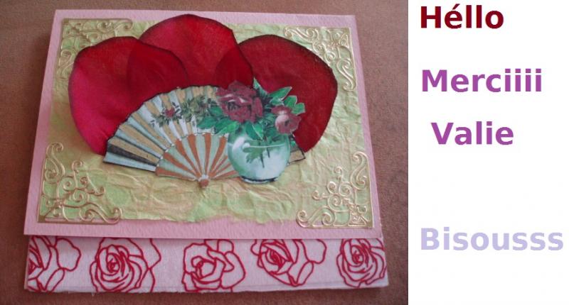 Ici il fait pas beau, gris est de la neige. Encore gâter une belle carte fait main par Valie, merci beaucoup. Voici sont blog http://lareunionpassion.canalblog.com Bon dimanche à tous