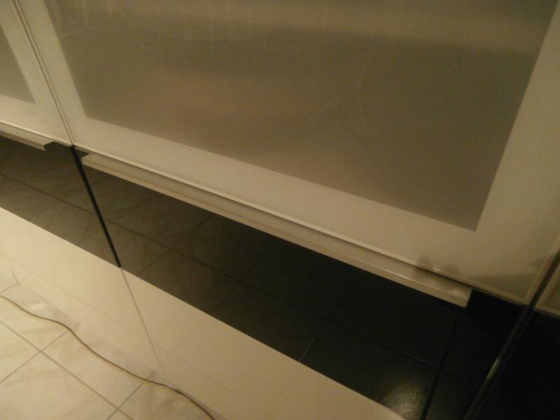 puis en cherchant un peu nous avons fini par trouver ces réglettes en acier brossé pour mettre sur les tiroirs afin de pouvoir les ouvrir facilement
