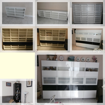 et nous voilà donc partis chercher les éléments de la nouvelle composition : car tout est en kit maintenant du moins pour le mobilier moderne!!!!!!!!!! petit à petit les différents éléments se montent, s assemblent - puis ce sont les tiroirs puis les portes et enfin c est à moi de jouer pour remplir les petites cases tout en essayant de ranger "intelligement" et "pratique"............... ouf tout est rentré!!!!!!!!!!!!!!!! il ne reste que les verres à ranger mais là il faut qu on attende que la commande des étagères spéciales arrive toutefois j ai quand même gardé une partie de mon ancien meuble qui est venue s intégréer dans le salon afin de pouvoir y ranger les bibelots qui n ont pas pu trouver place.............. et maintenant il ne reste plus qu à faire le ménage encore une fois......