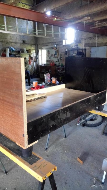 quand nous avons acheté notre nouveau frigo il nous a paru évident que la télé ne pouvait pas être remise sur le dessus car il était bien plus grand que l autre alors que faire????? racheter un nouveau meuble???? on a un peu regardé et rien de bien "folichon" - en attendant je l avais mise sur un petit meuble ancien qui venait de chez mes parents mais cela n était que provisoire et lorsqu on a démonté l ancien meuble de séjour, mon mari a tout stocké au garage "au cas où!!!!!!!!!!!! cela peut servir" - et bien voilà l opération "recyclage" a été lancée (imaginée par mon mari cette fois) avec le bloc tiroir qui prenait le plus de place dans le stockage