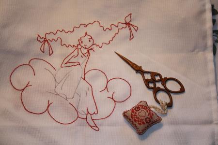 ... j'ai brodé cette petite bonne femme qui se repose !... elle plaît beaucoup à mes petits-enfants !!! ... un air de famille avec la grand'mère que je suis ??? |