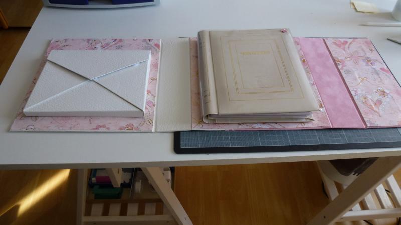 Le porte Album ouvert avec une enveloppe pour joindre les mille et un petit plus des souvenirs